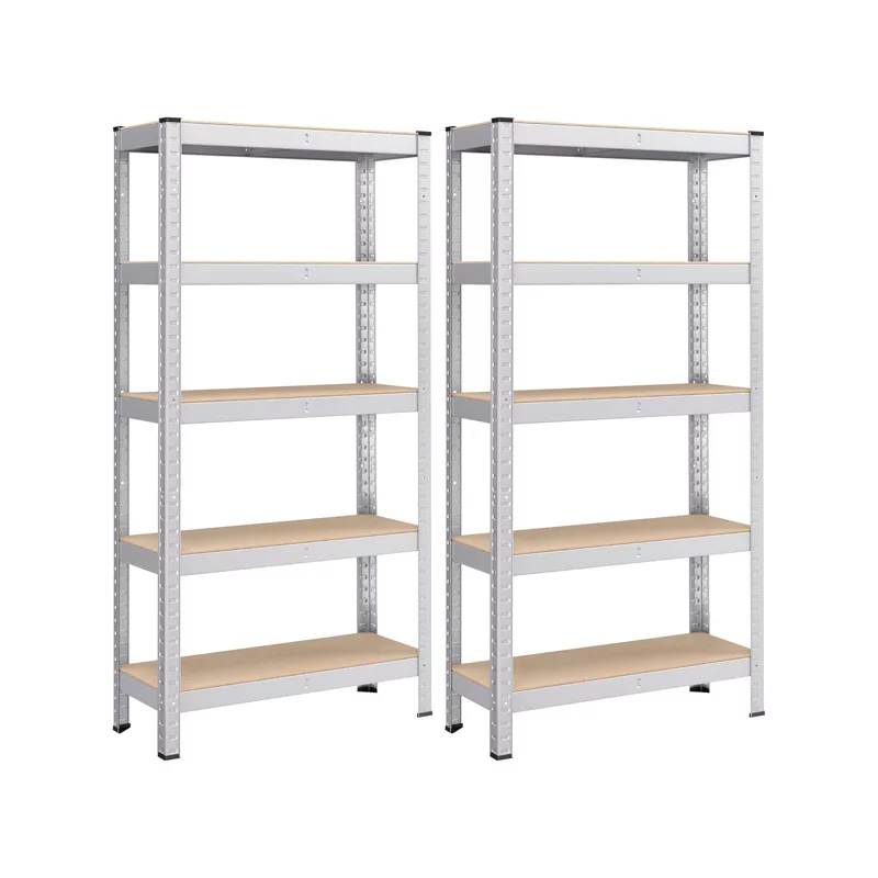 SONGMICS Lot de 2, Étagère de Rangement à 5 Niveaux, 30 x 75 x 150 cm, Capacité 650 kg, Planches Réglables, Style Industriel, pour Cuisine, Salon, Argent